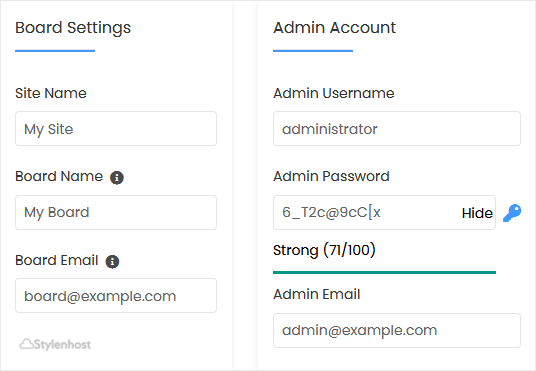 • Admin Username: Your new MyBB username (for security reasons, do not use the administrator or the admin username).