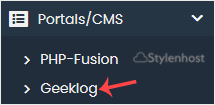 4. On the left side, locate the Portal/CMS category. Click on it and then on the Geeklog link that appears.