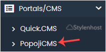 4. On the left side, locate the Portal/CMS category. Click on it and then on the PopojiCMS link that appears.